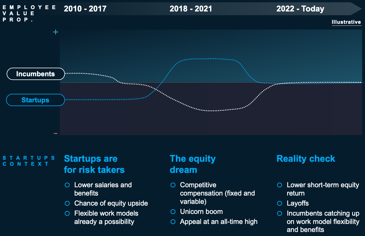 • Incumbents catching up on work model flexibility and benefits
